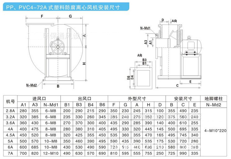 顺捷牌PP4-72塑料离心通风机产品参数: